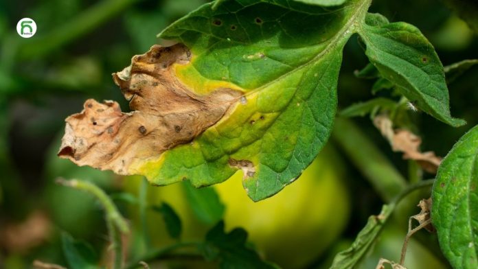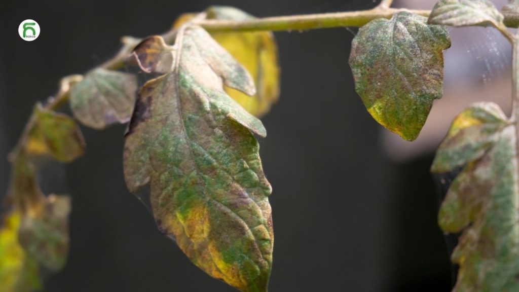 - ខ្លោចចុង និងគែមស្លឹក៖ ចុងស្លឹក និងគែមស្លឹកចាប់ផ្តើមប្រែជាពណ៌លឿង រួចប្រែទៅជាពណ៌ត្នោត ឬខ្មៅ (ក្រៀមខ្លោច)។