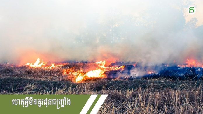 ការដុតជញ្ជ្រាំងក្រោយប្រមូលផលនៅតែកើតមាននៅក្នុងប្រទេសកម្ពុជា ដោយកសិករមួយចំនួនយល់ថាការដុតនេះនឹងបង្កភាពងាយស្រួលក្នុងការបង្កបង្កើនផលនៅរដូវបន្ទាប់។ ប៉ុន្តែការធ្វើបែបនេះ មិនមែនជារឿងល្អសម្រាប់វិស័យកសិកម្ម និងបរិស្ថាននោះទេ។ ការដុតជញ្ជ្រាំងបង្កផលប៉ះពាល់មួយចំនួនដល់វិស័យកសិកម្ម និងបរិស្ថាន។